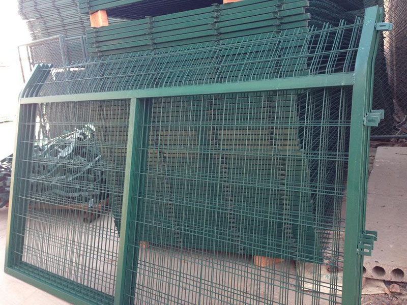 通線2012-8001防護柵欄分為兩種。一種是用在鐵路通線橋下的隔離網是跟根據鐵路橋下防護柵欄2012(8002)標準來生產制作的,鐵路防護柵欄的金屬網片規格為2760*1700mm、絲徑為4.0mm、網孔為75*150mm、邊框為Q235材質的30*50*2.0mm矩管,然后加工成型后整體熱鍍鋅浸塑進行防腐處理。第二種是用在鐵路通線倆側的隔離網是根據鐵路線路防護柵欄通線(2012)8001標準來生產制作的,鐵路防護柵欄的金屬網片規格為2760*1797mm、絲徑為4.0mm、網孔為75*150mm、邊框為Q235材質的30*50*2.0mm矩管帶有30度折彎,然后加工成型后整體熱鍍鋅浸塑進行防腐處理。