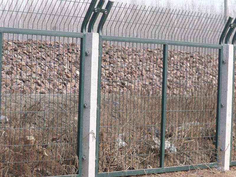 產(chǎn)品材質(zhì)及工藝:內(nèi)部采用HPB300冷拔低碳鋼絲與Q235矩管邊框;焊接完畢后,表面采用整體熱鍍鋅后浸塑處理,浸塑粉末一般采用墨綠、表面光滑、平整、日久抗腐蝕、抗紫外線的特性。鐵路防護(hù)柵欄是鐵路的安全設(shè)施安裝工程,主要應(yīng)用在鐵路軌道兩側(cè),用來(lái)防止來(lái)往的行人接近軌道及來(lái)往的火車,以保證行人的人身安全。因此,鐵路防護(hù)柵欄無(wú)論在技術(shù)上還是在質(zhì)量上都比其他隔離柵要求更加嚴(yán)格。鐵路防護(hù)柵欄采用立柱混凝土澆筑件,工程造價(jià)低,強(qiáng)度高,整體穩(wěn)定性好,適合大面積采用。