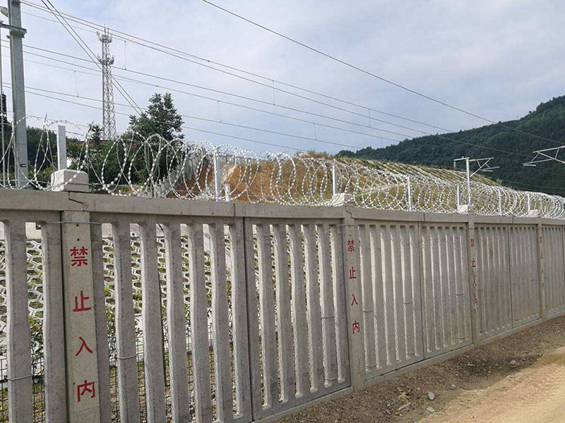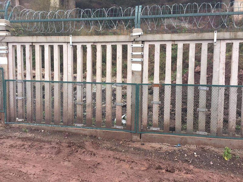 鋼筋混凝土立柱金屬網(wǎng)片防護柵欄由立柱、網(wǎng)片及連接部件組成,防護高度1.8m。根據(jù)國家要求,安平縣帝順絲網(wǎng)有限公司特生產(chǎn)有通線2012-8001和通線2012-8002兩種國標(biāo)產(chǎn)品,為鐵路線路提供安全防護。